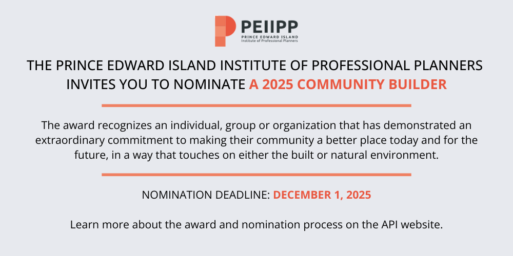 The Pinchuk Community Builder Award is an award offered by the Prince Edward Island Institute of Professional Planners (formerly the Prince Edward Island Association of Planners) since 2013. This Award honours the contributions of the late Murray Pinchuk to professional planning practise on Prince Edward Island. Murray worked with the City of Summerside for many years and actively contributed to and promoted planning on Prince Edward Island.